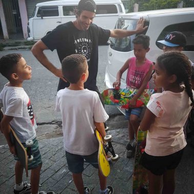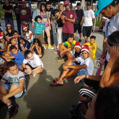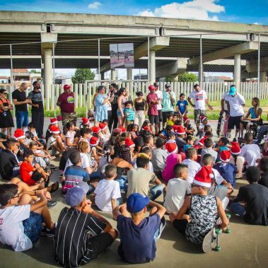 No mês de dezembro o Instituto Viva Iris visitou um local muito especial com o projeto “Amor Sobre 4 Rodinhas” A Ong Social Skate, capitaneada por Sandro Testinha e sua companheira Leila sempre estiveram presentes em nosso caminho sendo fonte de imensa inspiração. Houve quem tenha perguntado: mas um equipamento para inclusão de pessoas com deficiência em um local que não trabalha com pessoas com deficiência? Mas é exatamente aí que mora o engano. É exatamente nesse lugar que esse equipamento precisa estar, porque é lá que temos a total e absoluta certeza que todos serão parte de um só grupo, sem diferenças. É ali que a mudança existe e que a oportunidade é para todos, sem exceção. A Social Skate têm feito um trabalho gigante e incrível, por anos atrás da névoa do esquecimento e da indiferença de todos os poderes. É lá, que debaixo das asas do Sandro e da Leila estão mudando a sua comunidade e o entorno. Com ações diversas, que envolvem esporte e educação, mas muito além disso, compromisso social, com o mundo, com o meio ambiente, com o ser humano. Nesse dia houve uma festa de Natal. Agradeci ao Sandro pela oportunidade de estar lá, e ele me disse: quer um dia melhor do que o próprio aniversário de Jesus para estarmos juntos aqui? Nós vimos um grupo de crianças que poderiam estar a margem de uma sociedade. Mas são acolhidas, envolvidas, educadas, respeitosas, estavam atentas a cada palavra, cheios de afeto, inteligência, alegria. Esperança. Que aqueles dois que ali estavam rodeados delas são realmente referências de um caminho possível a seguir. Com a certeza de que a responsabilidade é de todos nós e aquela máxima de Gandhi faz todo o sentido: ser a diferença que queremos ver! Só depende de nós! Gratidão Vans Brasil, Testinha, Leila, Dexter, Rodrigo Kbeça, Dani (foi incrível), Thyago Ribeiro… todo mundo que estava por lá. Especialmente Social Skate por tanto nesse mundo. Que possamos estar sempre juntos!