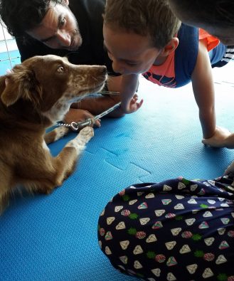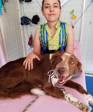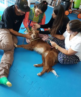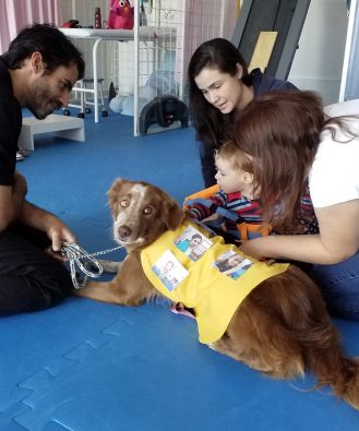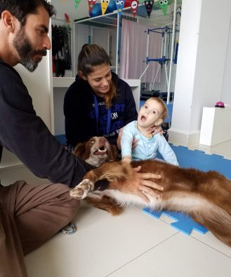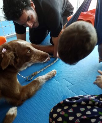 A Intervenção Assistida por Animais (IAA) é uma técnica cientificamente comprovada e tem como objetivo específico utilizar-se dos benefícios do contato entre seres humanos e animais. Aqui o animal surge como catalisador, modificando o ambiente e o cotidiano do tratamento, aparece como uma possibilidade de expressão dos sentimentos dos pacientes e interações importantes. As atividades podem ser individualizadas ou em grupo, sempre projetadas para promover a melhora da saúde física, social, emocional e funcionamento do cognitivo. Os benefícios dos animais para as pessoas são enormes, eles tocam as vidas de pessoas de todas as idades. trazem conforto, segurança, experiências sensoriais, alterações nos sistemas e motivação. Os cães aqui são coterapeutas, que merecem todo carinho e cuidado com seu bem estar. Para proporcionar tantos benefícios é importante que estejam felizes na atividade e sintam-se seguros na interação. Quando todos os cuidados são observados o que temos é uma grande relação de afeto que auxilia o paciente, familiares, equipe de cuidados e todos a volta. Com momentos recheados de carinho e lambeijos que tocam profundamente os corações.
